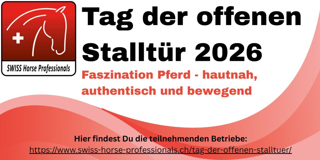 Pferde begeistern – und das nicht nur auf dem Reitplatz. Hinter jeder gepflegten Box, jeder gut gerittenen Lektion und jedem zufriedenen Pferd steht eine Menge Engagement, Fachwissen und tägliche Arbeit.Die tägliche Arbeit auf einem Pferdebetrieb erfordert nicht nur Fachkenntnis und Engagement, sondern vor allem eine tiefe Leidenschaft für das Tier. Jede Aufgabe – ob in der Pflege, im Training oder im Stallalltag – ist darauf ausgerichtet, die Gesundheit, das Vertrauen und das natürliche Verhalten der Pferde zu fördern. Der „Tag der offenen Stalltür“, initiiert von SWISS Horse Professional, lädt die breite Bevölkerung dazu ein, genau das kennenzulernen.